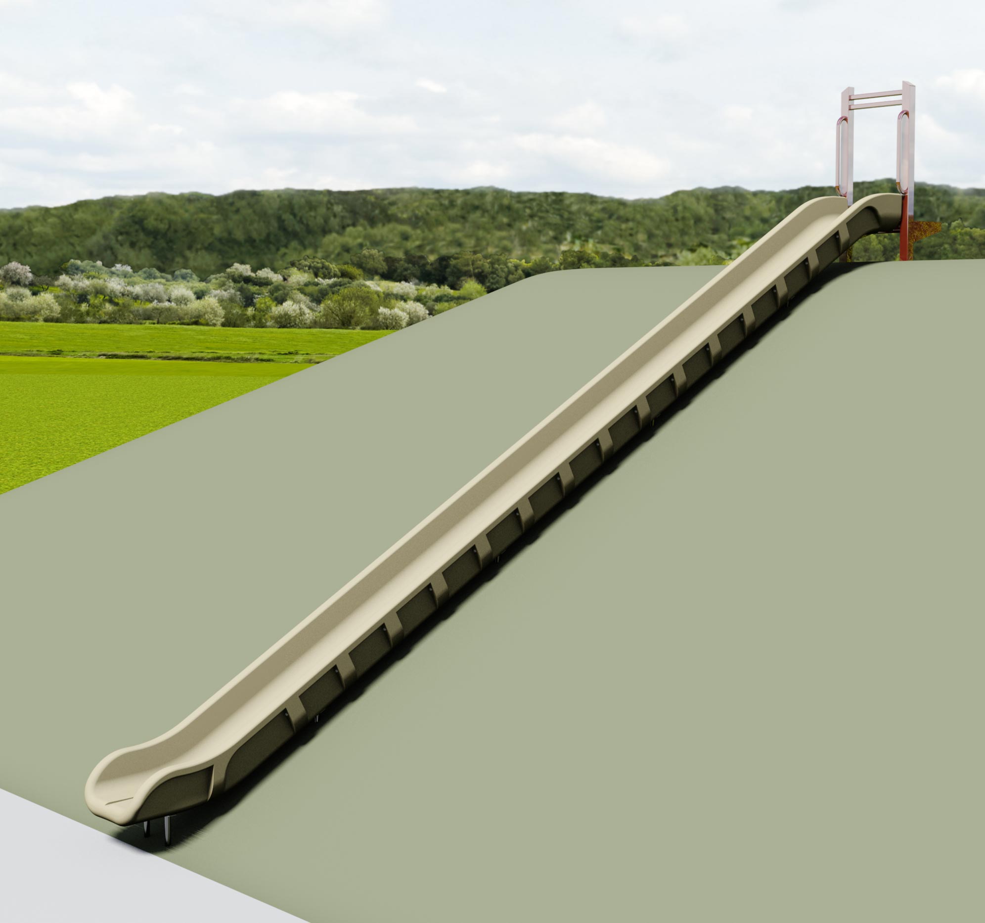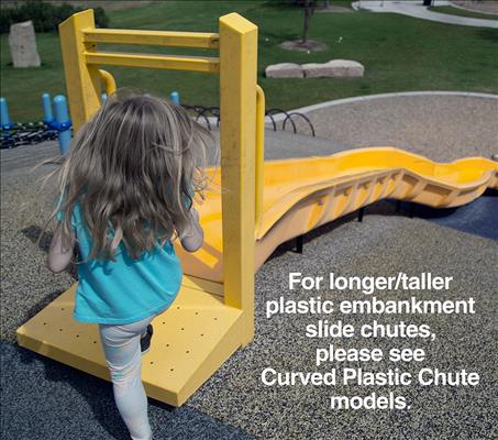 1650-121-EMB Embankment Slide Chute Rotationally-molded, Medium Density Polyethylene, 3/8" Thick For 12' Drop in Elevation Features/Activities: Slide Chute is available in tan or yellow. Standard entry platform is powder coated one-piece metal assembly. Accessibility Profile: Entry platform is flush with grade (standard) or elevated (ADA accessible) as shown. Downloads: View or Download: Longer/Taller Plastic Embankment Slide Chutes Features/Activities: Please visit Curved Plastic Chute models. View or Download: |