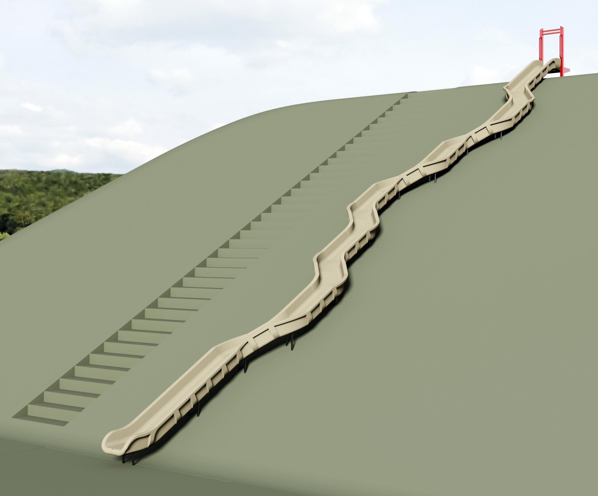 1650-93-01-EMB Curved Embankment Slide Chute Rotationally-molded, Medium Density Polyethylene, 3/8" Thick For 9' Drop in Elevation Features/Activities: Slide Chute is available in tan or yellow. Standard entry platform is powder coated one-piece metal assembly. Accessibility Profile: Entry platform is flush with grade (standard) or elevated (ADA accessible) as shown. Downloads: View or Download: 1650-103-01-EMB Curved Embankment Slide Chute Rotationally-molded, Medium Density Polyethylene, 3/8" Thick For 10' Drop in Elevation Features/Activities: Slide Chute is available in tan or yellow. Standard entry platform is powder coated one-piece metal assembly. Accessibility Profile: Entry platform is flush with grade (standard) or elevated (ADA accessible). Shown with custom PipeLine entry platform. Downloads: View or Download: |