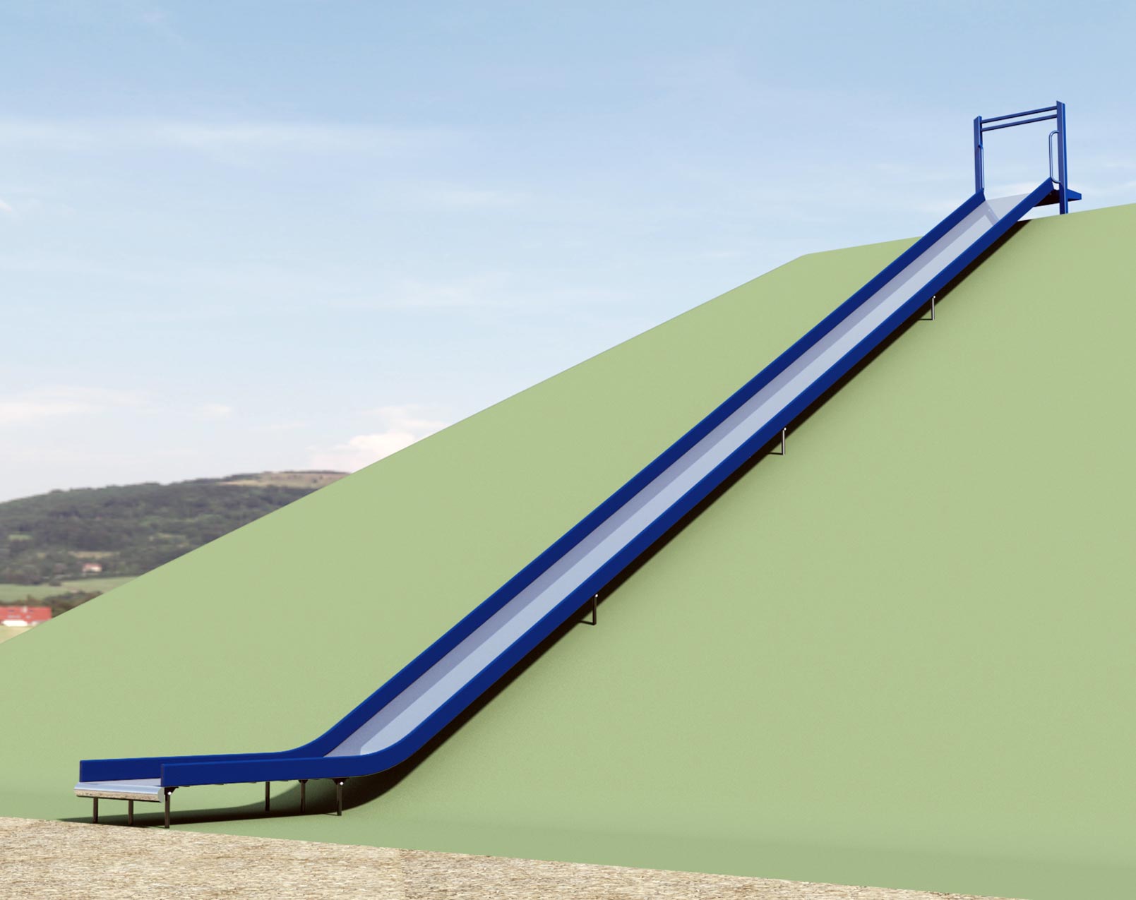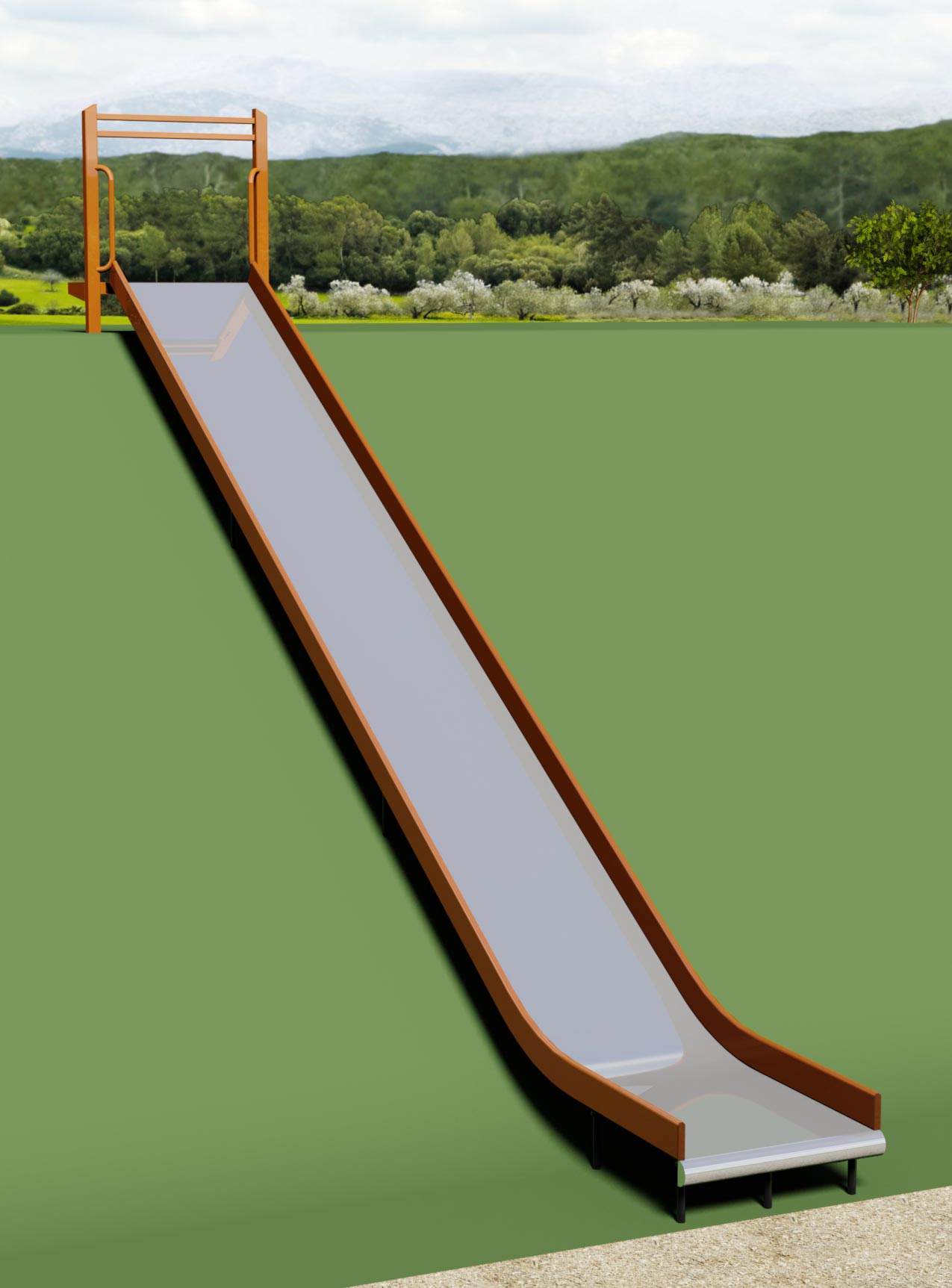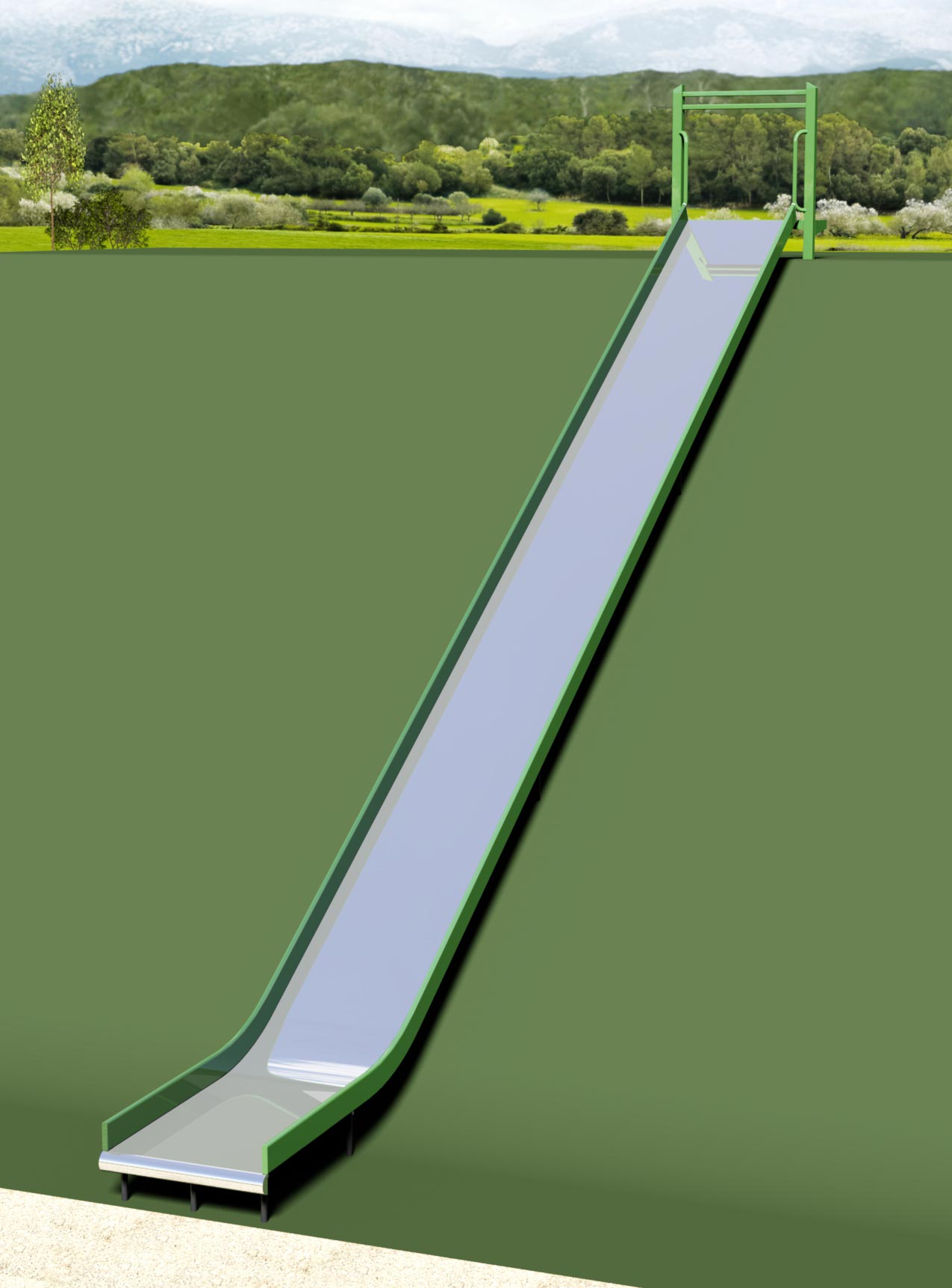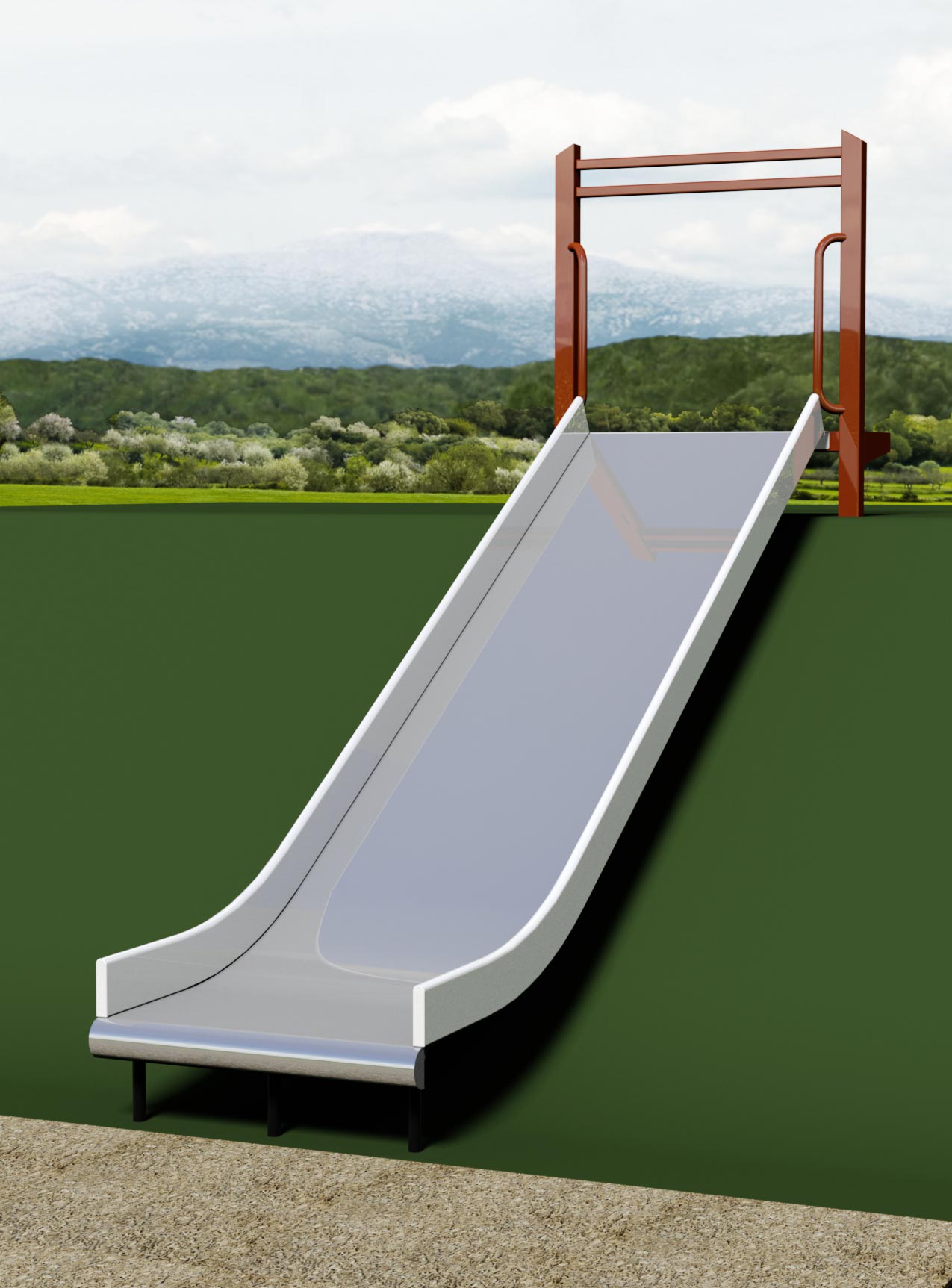 1643-241-EMB Wide Embankment Slide Chute Stainless Steel with 6" (15cm) Side Rails For 24' Drop in Elevation Features/Activities: (Two 1643-241-EMB chutes shown here side-by-side) Stainless Steel chute is 36" wide with 6" powder-coated Side Rails. Bed is seamless 16-gauge bright annealed stainless steel. Also offered as a WAVE Slide - contact us for more information. Accessibility Profile: Entry platform is flush with grade (standard) or elevated (ADA accessible) as shown. Downloads: View or Download: 1643-261-EMB Wide Embankment Slide Chute Stainless Steel with 6" (15cm) Side Rails For 26' Drop in Elevation Features/Activities: Stainless Steel chute is 36" wide with 6" powder-coated Side Rails. Bed is seamless 16-gauge bright annealed stainless steel. Also offered as a WAVE Slide - contact us for more information. Accessibility Profile: Entry platform is flush with grade (standard) or elevated (ADA accessible) as shown. Downloads: View or Download: |