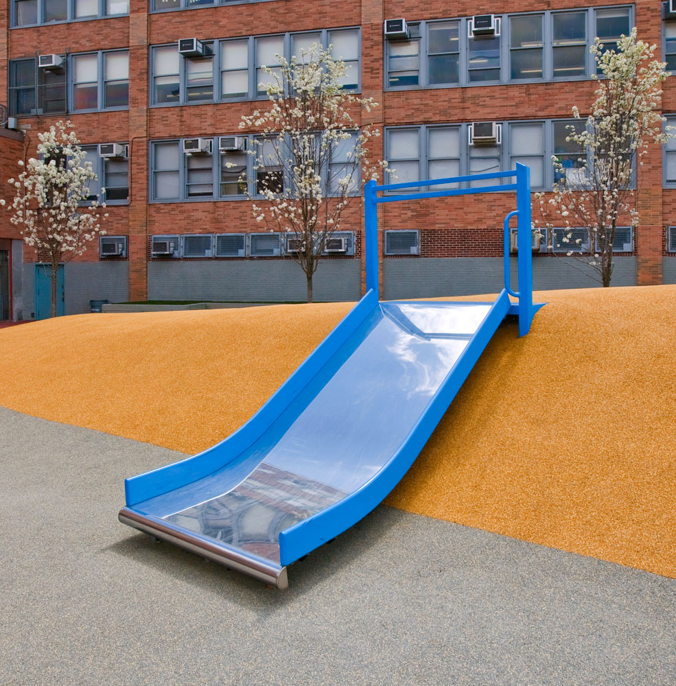 1643-201-EMB Wide Embankment Slide Chute Stainless Steel with 6" (15cm) Side Rails For 20' Drop in Elevation Features/Activities: Stainless Steel chute is 36" wide with 6" powder-coated Side Rails. Bed is seamless 16-gauge bright annealed stainless steel. Also offered as a WAVE Slide - contact us for more information. Accessibility Profile: Entry platform is flush with grade (standard) or elevated (ADA accessible) as shown. Downloads: View or Download: 1643-221-EMB Wide Embankment Slide Chute Stainless Steel with 6" (15cm) Side Rails For 22' Drop in Elevation Features/Activities: Stainless Steel chute is 36" wide with 6" powder-coated Side Rails. Bed is seamless 16-gauge bright annealed stainless steel. Also offered as a WAVE Slide - contact us for more information. Accessibility Profile: Entry platform is flush with grade (standard) or elevated (ADA accessible) as shown. Downloads: View or Download: |