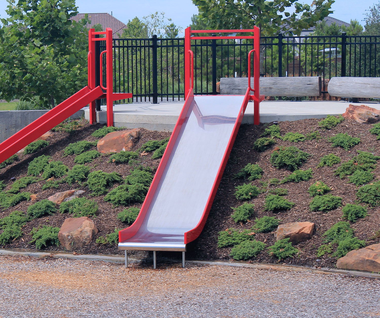 1643-91-EMB Wide Embankment Slide Chute Stainless Steel with 6" (15cm) Tall Side Rails For 9' Drop in Elevation Features/Activities: Stainless Steel chute is 36" wide with 6" tall powder-coated Side Rails. Bed is seamless 16-gauge bright annealed stainless steel. Also offered as a WAVE Slide - contact us for more information. Accessibility Profile: Entry platform is flush with grade (standard) or elevated (ADA accessible) as shown. Downloads: View or Download: 1643-101-EMB Wide Embankment Slide Chute Stainless Steel with 6" (15cm) Tall Side Rails For 10' Drop in Elevation Features/Activities: Stainless Steel chute is 36" wide with 6" tall powder-coated Side Rails. Bed is seamless 16-gauge bright annealed stainless steel. Also offered as a WAVE Slide - contact us for more information. Accessibility Profile: Entry platform is flush with grade (standard) or elevated (ADA accessible) as shown. Downloads: View or Download: |