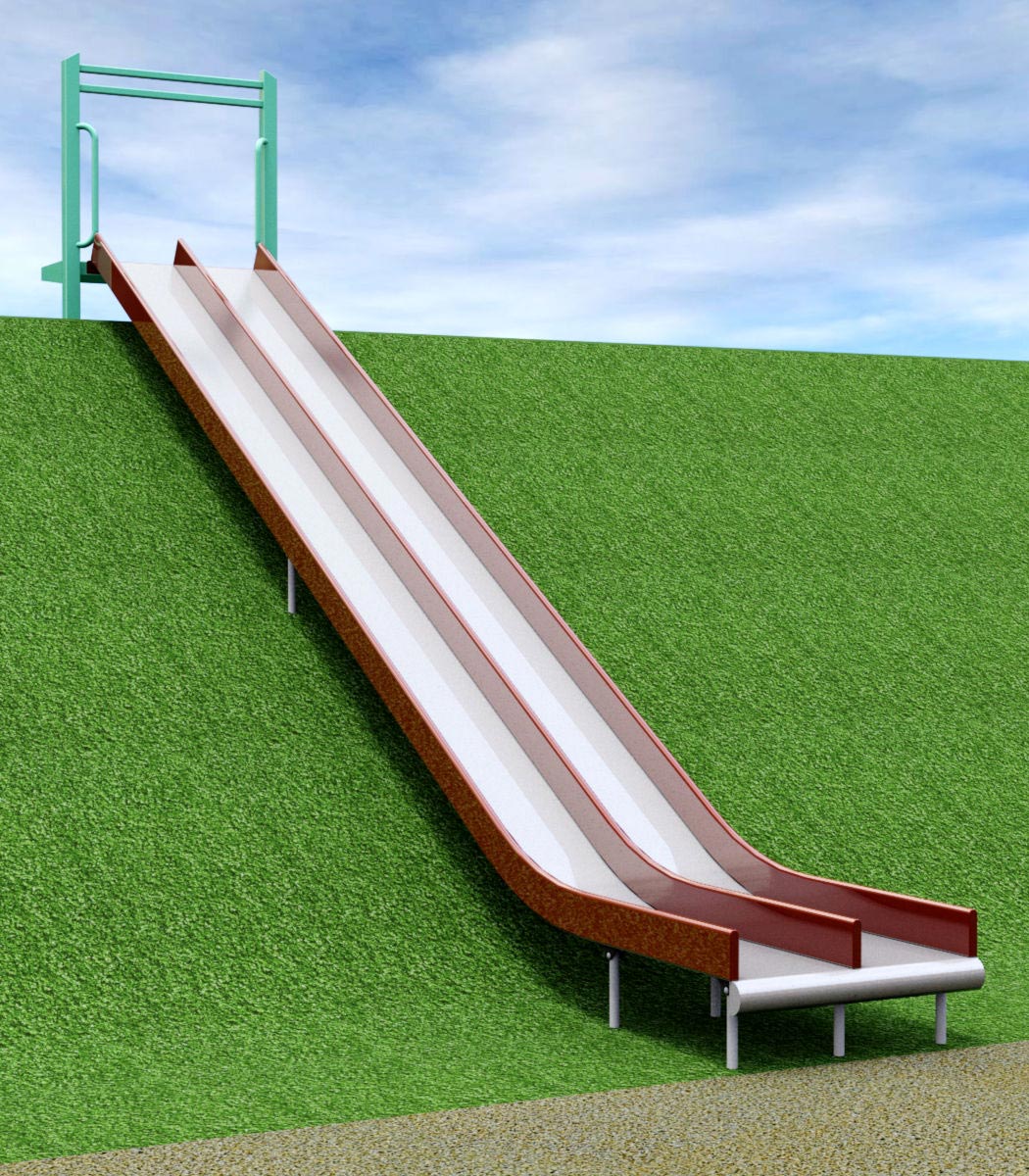 1643-182-EMB Wide Embankment Chute with Center Rail Stainless Steel with 6" (15cm) Tall Side & Center Rails For 18' Drop in Elevation Features/Activities: Stainless Steel chute is 36" wide with 6" tall powder-coated Side and Center Rails. Bed is seamless 16-gauge bright annealed stainless steel. Also offered as a WAVE Slide - contact us for more information. Accessibility Profile: Entry platform is flush with grade (standard) or elevated (ADA accessible) as shown. Downloads: View or Download: 1643-202-EMB Wide Embankment Chute with Center Rail Stainless Steel with 6" (15cm) Tall Side & Center Rails For 20' Drop in Elevation Features/Activities: Stainless Steel chute is 36" wide with 6" tall powder-coated Side and Center Rails. Bed is seamless 16-gauge bright annealed stainless steel. Also offered as a WAVE Slide - contact us for more information. Accessibility Profile: Entry platform is flush with grade (standard) or elevated (ADA accessible) as shown. Downloads: View or Download: |