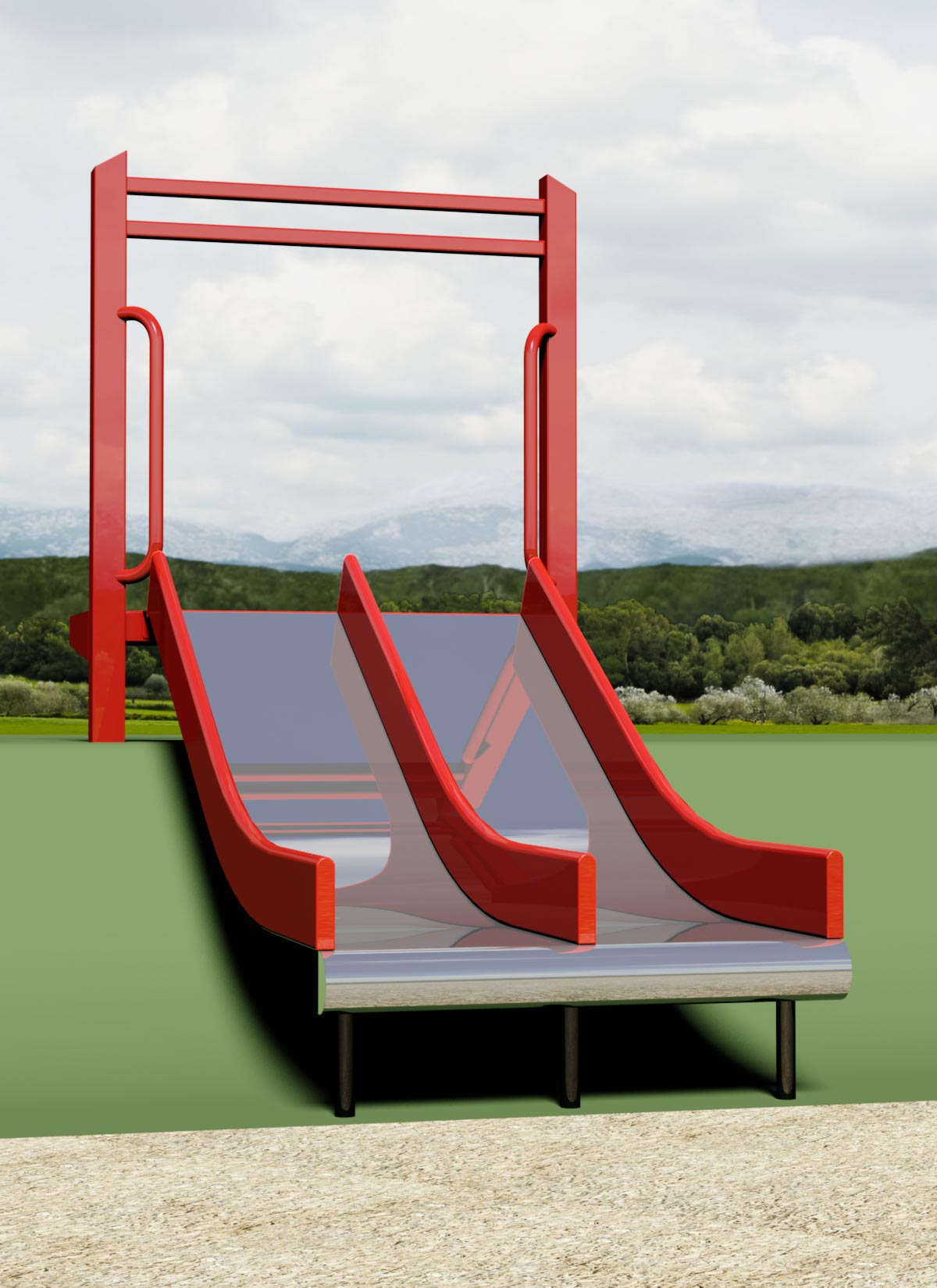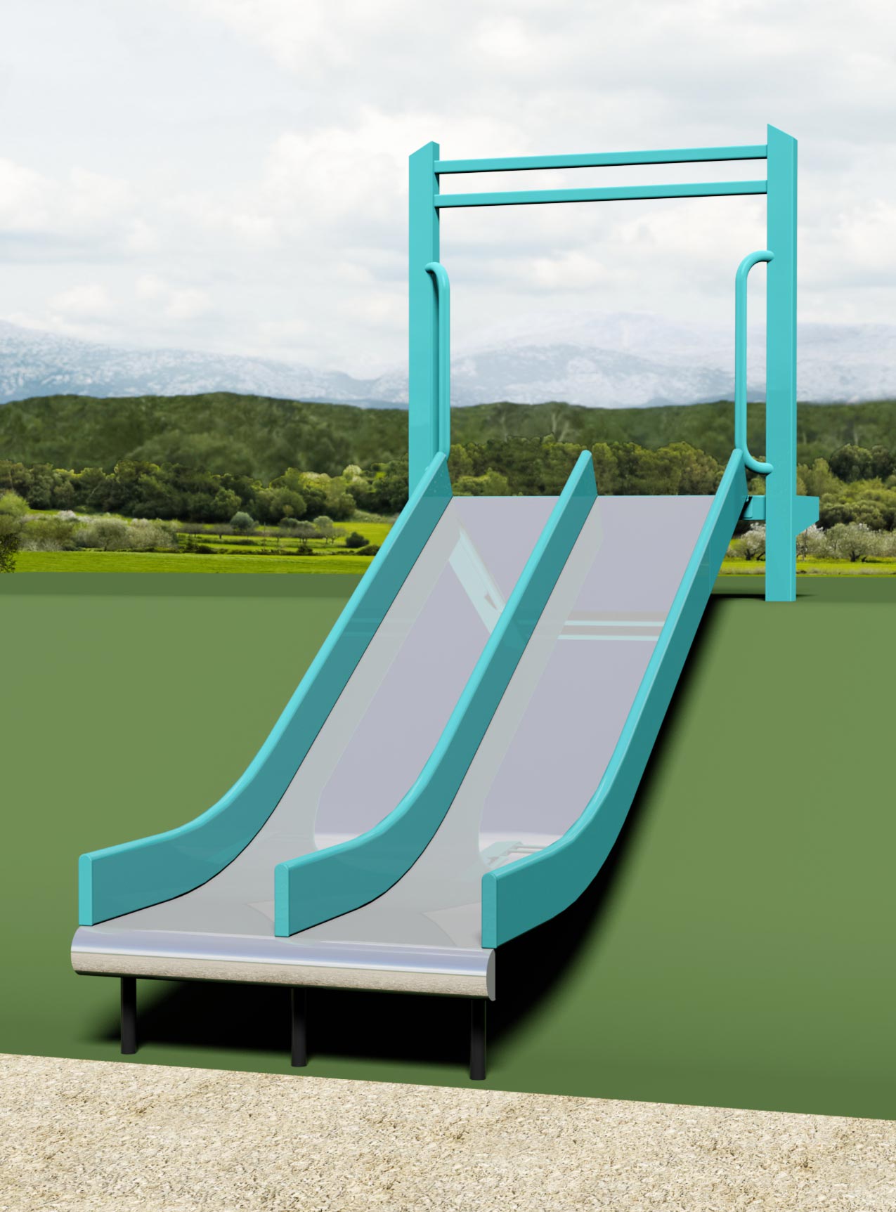 1643-62-EMB Wide Embankment Chute with Center Rail Stainless Steel with 6" (15cm) Tall Side & Center Rails For 6' Drop in Elevation Features/Activities: Stainless Steel chute is 36" wide with 6" tall powder-coated Side and Center Rails. Bed is seamless 16-gauge bright annealed stainless steel. Also offered as a WAVE Slide - contact us for more information. Accessibility Profile: Entry platform is flush with grade (standard) or elevated (ADA accessible) as shown. Downloads: View or Download: 1643-72-EMB Wide Embankment Chute with Center Rail Stainless Steel with 6" (15cm) Tall Side & Center Rails For 7' Drop in Elevation Features/Activities: Stainless Steel chute is 36" wide with 6" tall powder-coated Side and Center Rails. Bed is seamless 16-gauge bright annealed stainless steel. Also offered as a WAVE Slide - contact us for more information. Accessibility Profile: Entry platform is flush with grade (standard) or elevated (ADA accessible) as shown. Downloads: View or Download: |