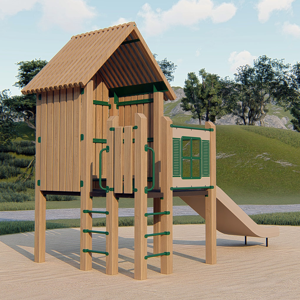 TimberForm PlayHouse™ 4200-5-TF Features/Activities: Playground Equipment Grade Douglas fir timber. For ages 2-5 or 5-12 For accessibility profile, dimensions of Play Area footprint, and minimum safe use zone refer to PDF or DWG drawings shown below. Downloads: View or Download: RePlay PlayHouse™ 4200-5-RP Features/Activities: 100% post-consumer extruded high density polyethylene (H.D.P.E.) plastic timber. 100% post-consumer extruded high density polyethylene (H.D.P.E.) plastic timber. For ages 2-5 or 5-12 For accessibility profile, dimensions of Play Area footprint, and minimum safe use zone refer to PDF or DWG drawings shown below. Downloads: View or Download: |