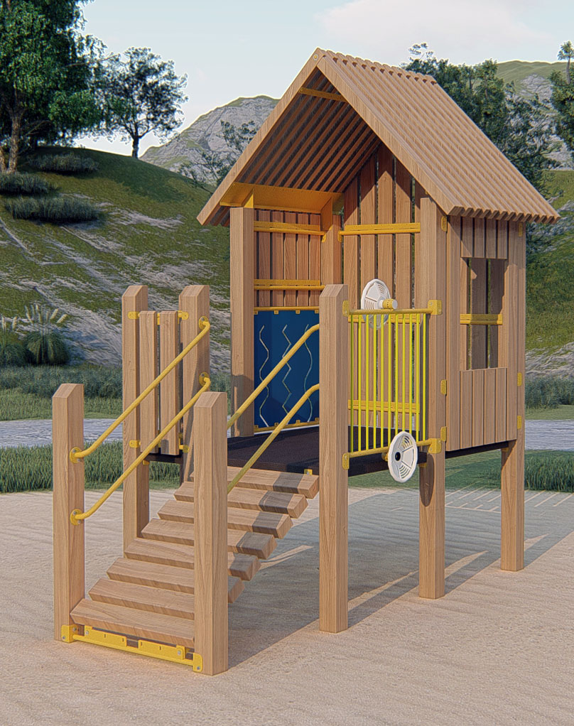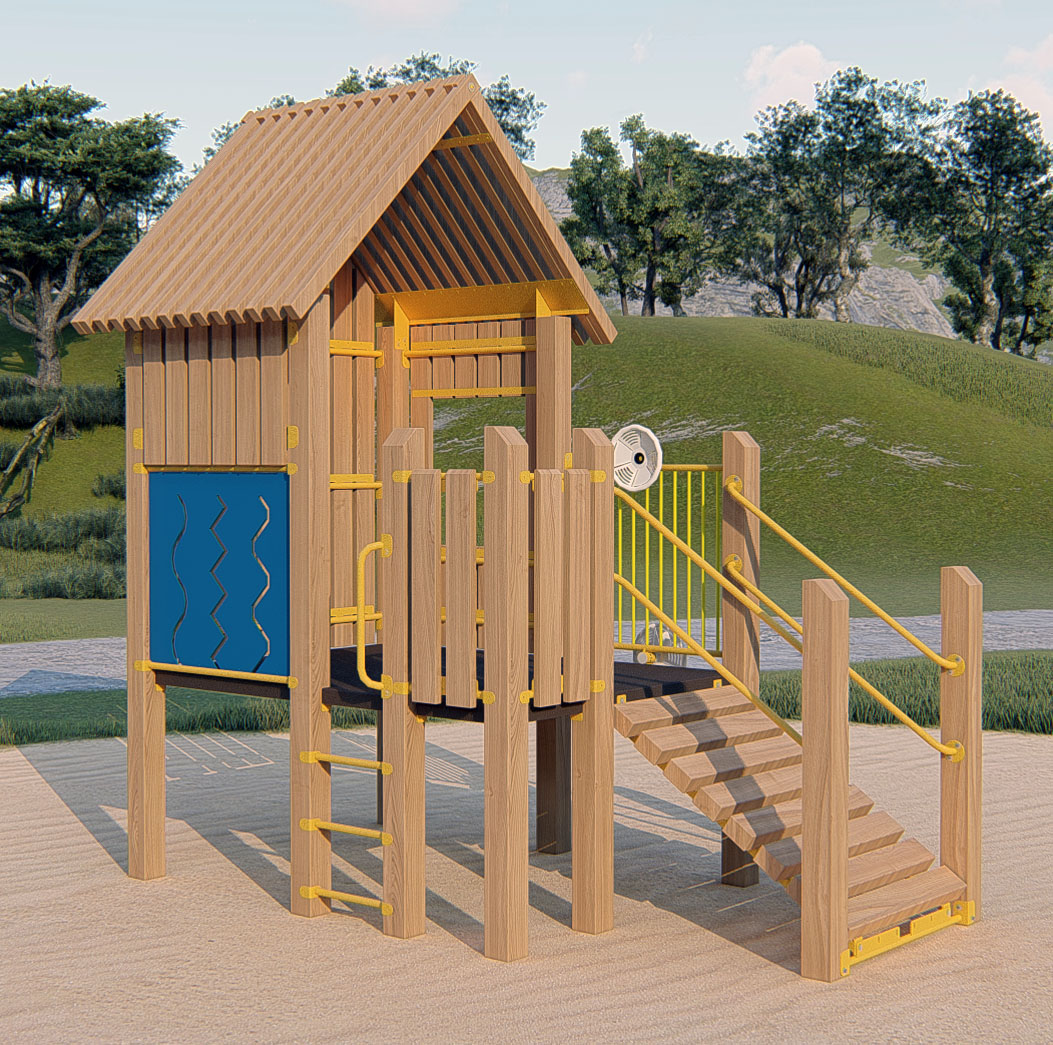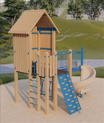 TimberForm PlayHouse™ 4200-1-TF Features/Activities: Playground Equipment Grade Douglas fir timber. For ages 5-12 For accessibility profile, dimensions of Play Area footprint, and minimum safe use zone refer to PDF or DWG drawings shown below. Downloads: View or Download: RePlay PlayHouse™ 4200-1-RP Features/Activities: 100% post-consumer extruded high density polyethylene (H.D.P.E.) plastic timber. For ages 5-12 For accessibility profile, dimensions of Play Area footprint, and minimum safe use zone refer to PDF or DWG drawings shown below. Downloads: View or Download: |