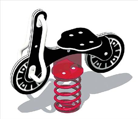 Mermaids Spring Rider See-Saw 3873-2 Features/Activities: Equipment Only: 11' x 3' (3.4m x 1.0m) Minimum Safe Use Zone: 23' x 15' (7.1m x 4.6m) Downloads: View or Download: Cycle Spring Rider 3881-01 Features/Activities: Equipment Only: 3' x 2' (1.0m x 0.7m) Minimum Safe Use Zone: 15' diameter. (4.6m dia.) Downloads: View or Download: |