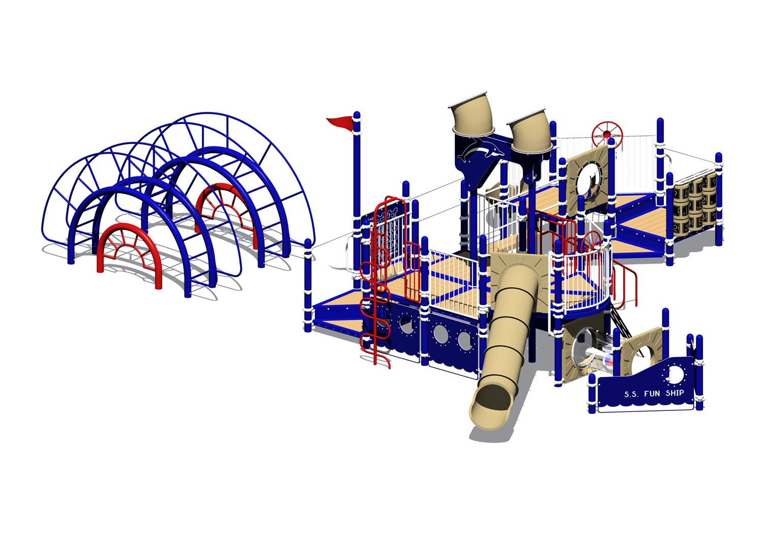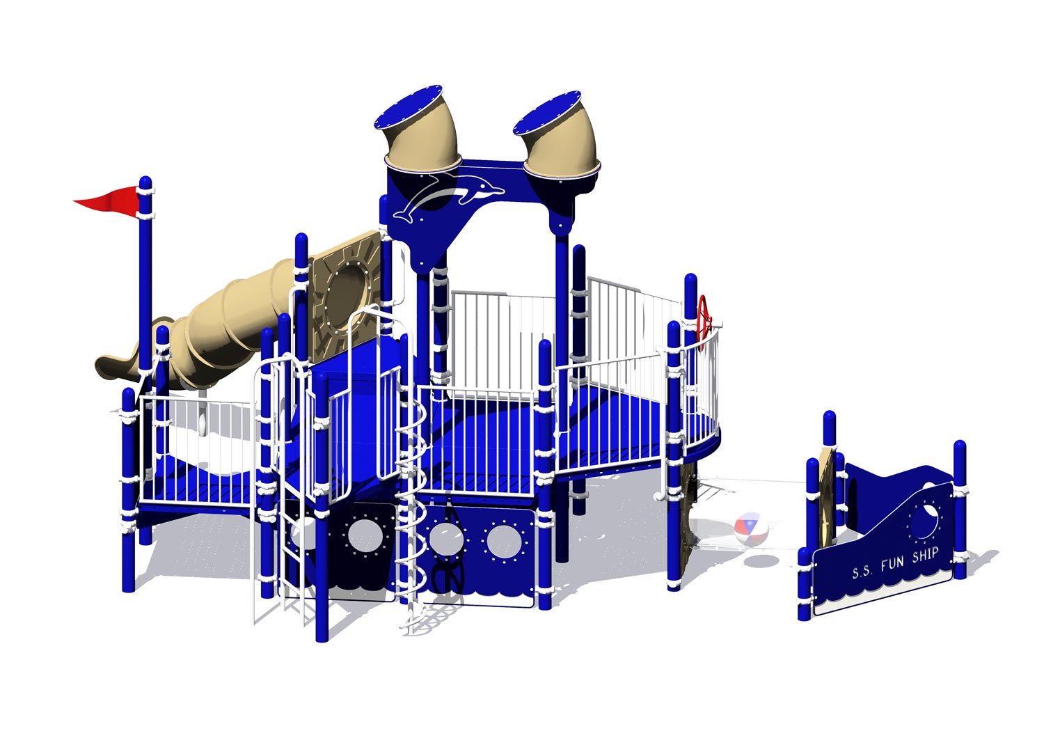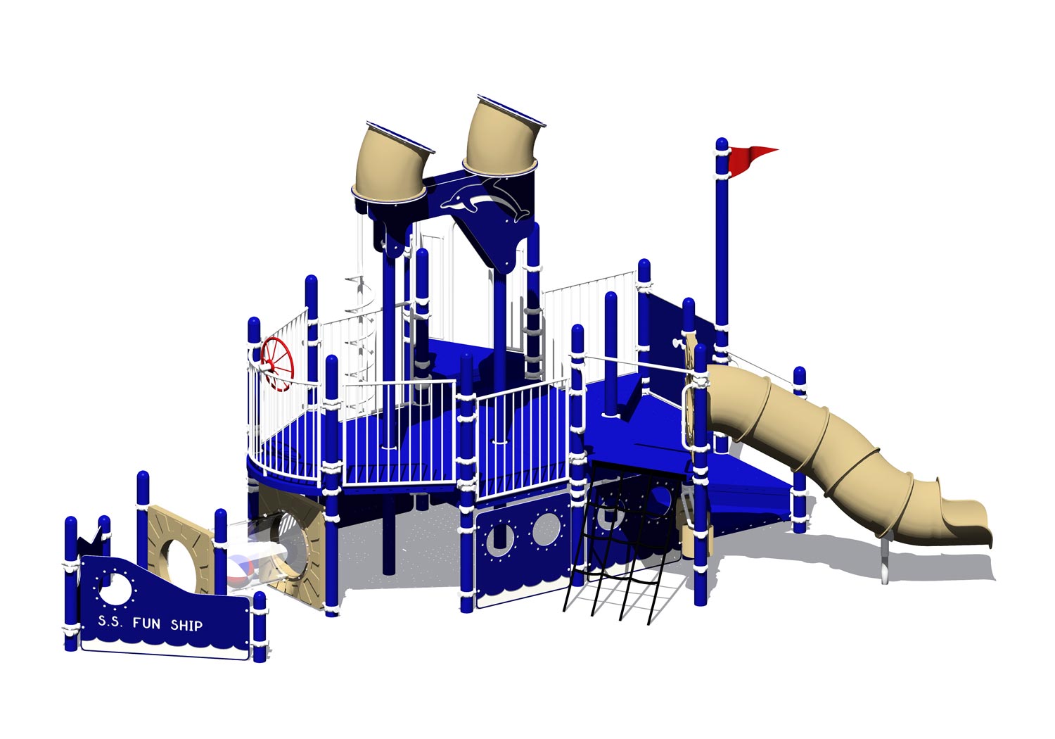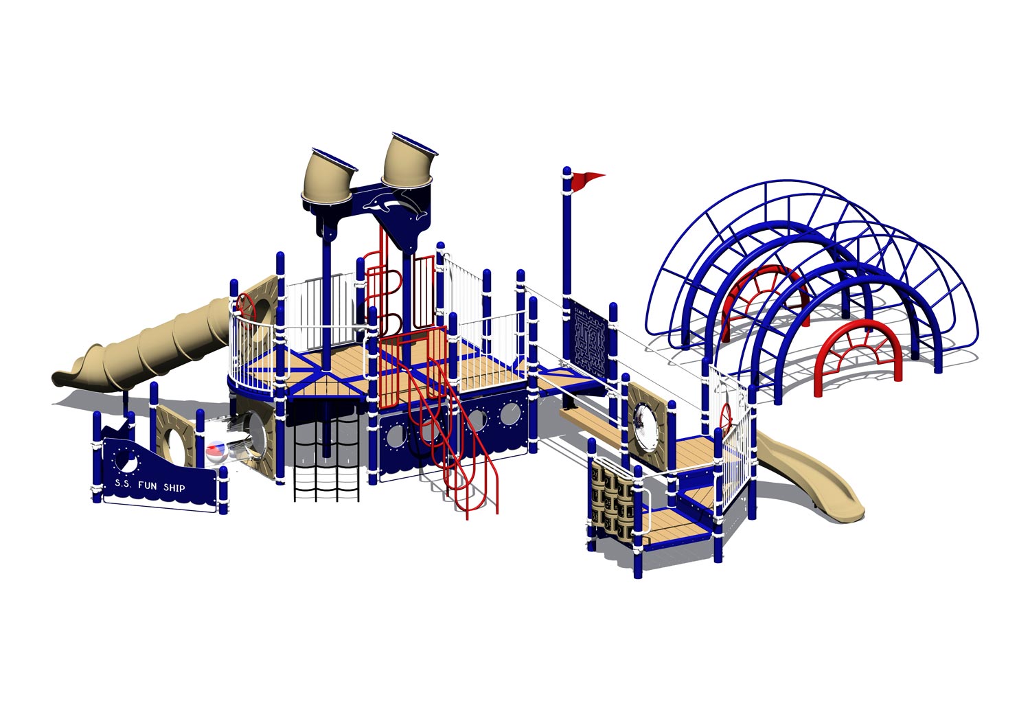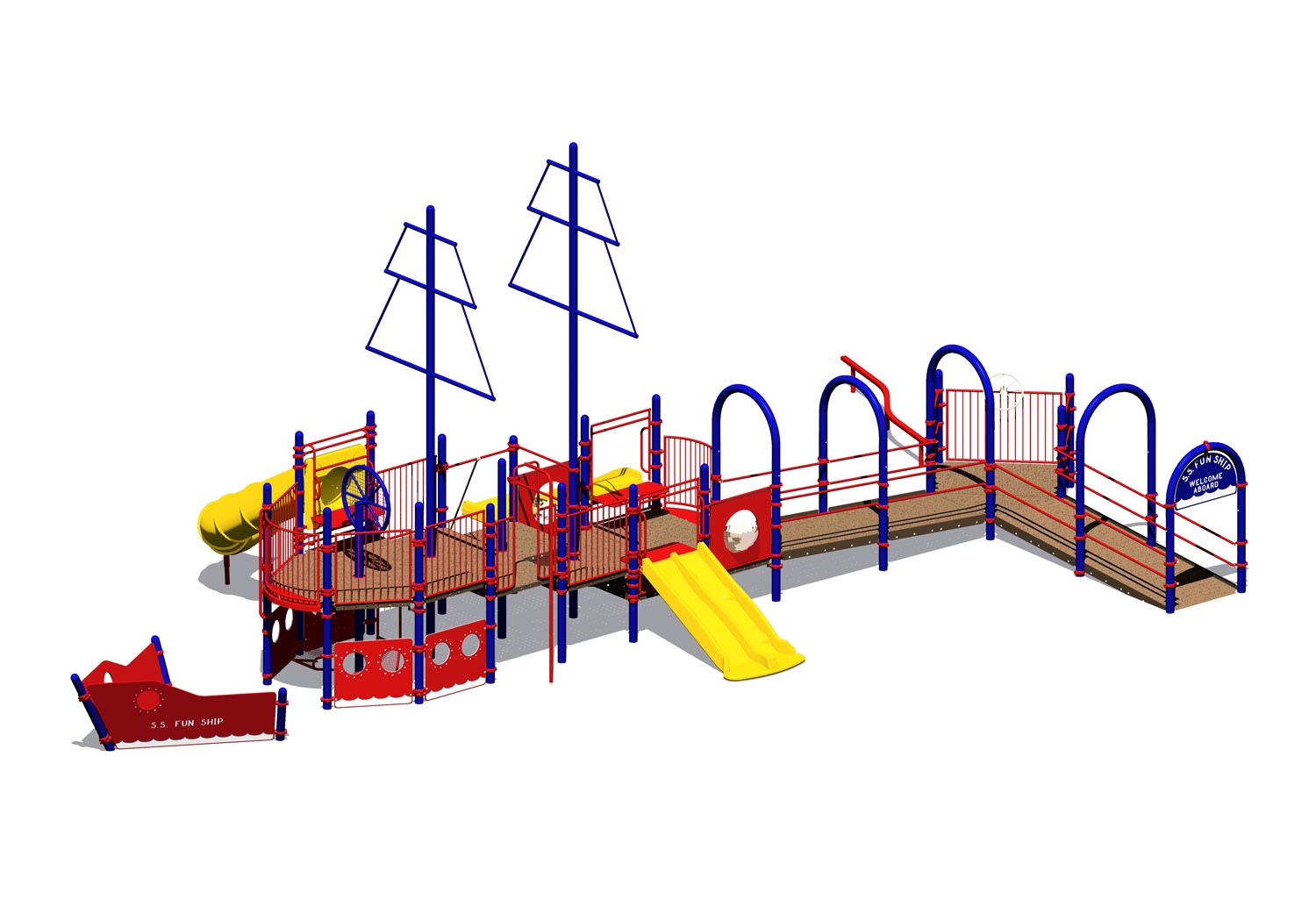 S.S. Fun Ship 3807-04-PL Features/Activities: Equipment Only: 27' x 20' (8.3m x 6.1m) Minimum Safe Use Zone: 39' x 32' (11.9m x 9.8m) PERSONALIZE YOUR THEMED PLAY AREA We can personalize the graphics and lettering for Themed Play Areas. Use the name of your local fire or police department, commemorate a celebrated ship or honor a historic person or event. Downloads: View or Download: Sternwheeler 3807-05-PL Features/Activities: Equipment Only: 42' x 33' (12.9m x 10.1m) Minimum Safe Use Zone: 54' x 45' (16.5m x 13.8m) PERSONALIZE YOUR THEMED PLAY AREA We can personalize the graphics and lettering for Themed Play Areas. Use the name of your local fire or police department, commemorate a celebrated ship or honor a historic person or event. Downloads: View or Download: |