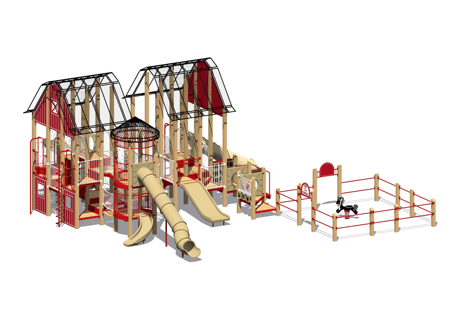 Barn with Silo and Corral 3817-01-TF Features/Activities: Equipment Only: 42' x 45' (12.9m x 13.8m) Minimum Safe Use Zone: 55' x 57' (16.8m x 17.4m) Also available in PipeLine version 3817-01-PL CUSTOM THEMED PLAYGROUND DESIGNS We can assist in creating a truly unique playground incorporating your desired theme. Contact our experienced design team for important guidelines. Downloads: View or Download: Barn 3817-03-PL Features/Activities: Equipment Only: 24' x 16' (7.4m x 4.9m) Minimum Safe Use Zone: 36' x 28' (11.0m x 8.6m) Also available in TimberForm version 3817-03-TF Downloads: View or Download: |