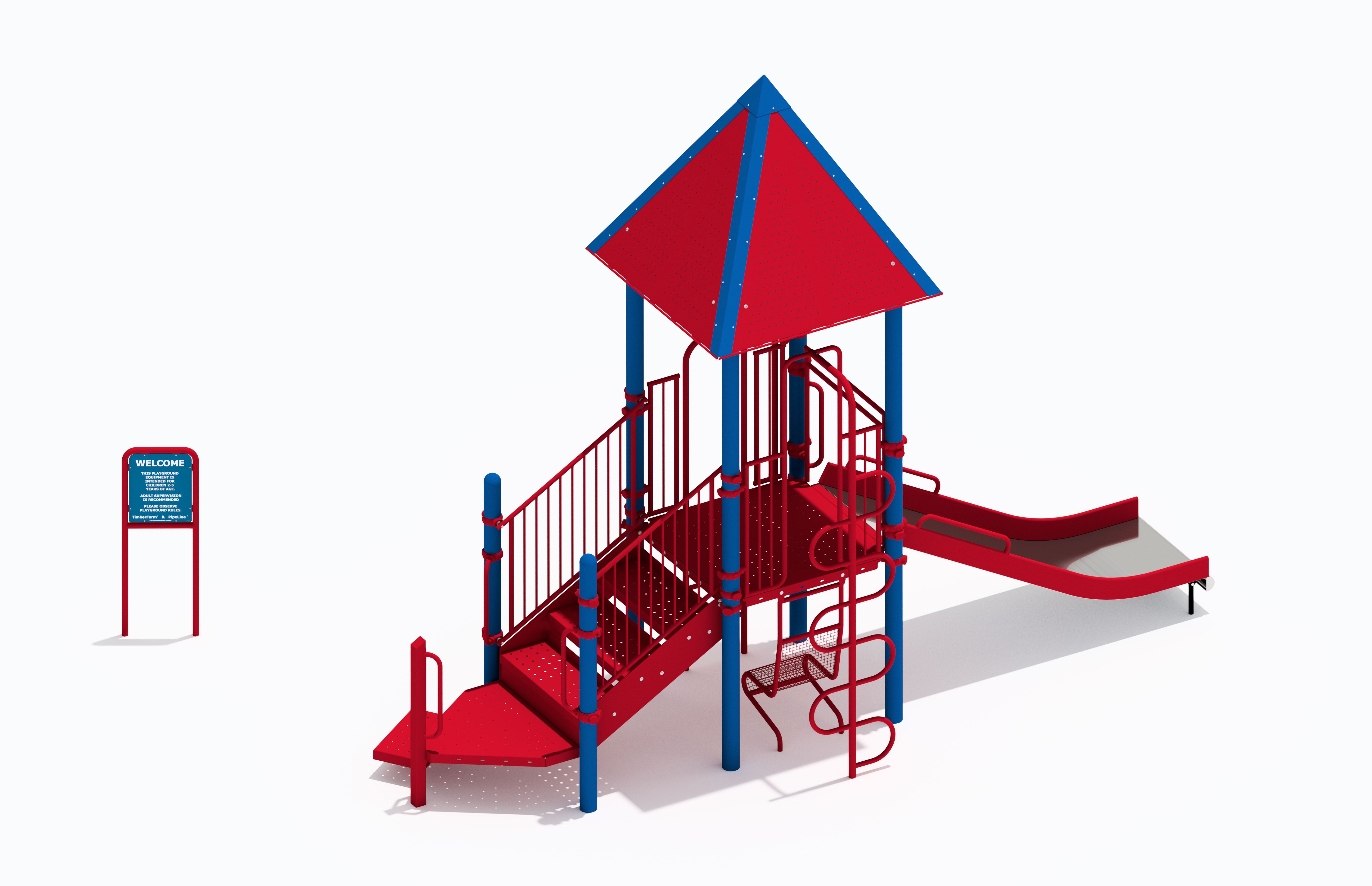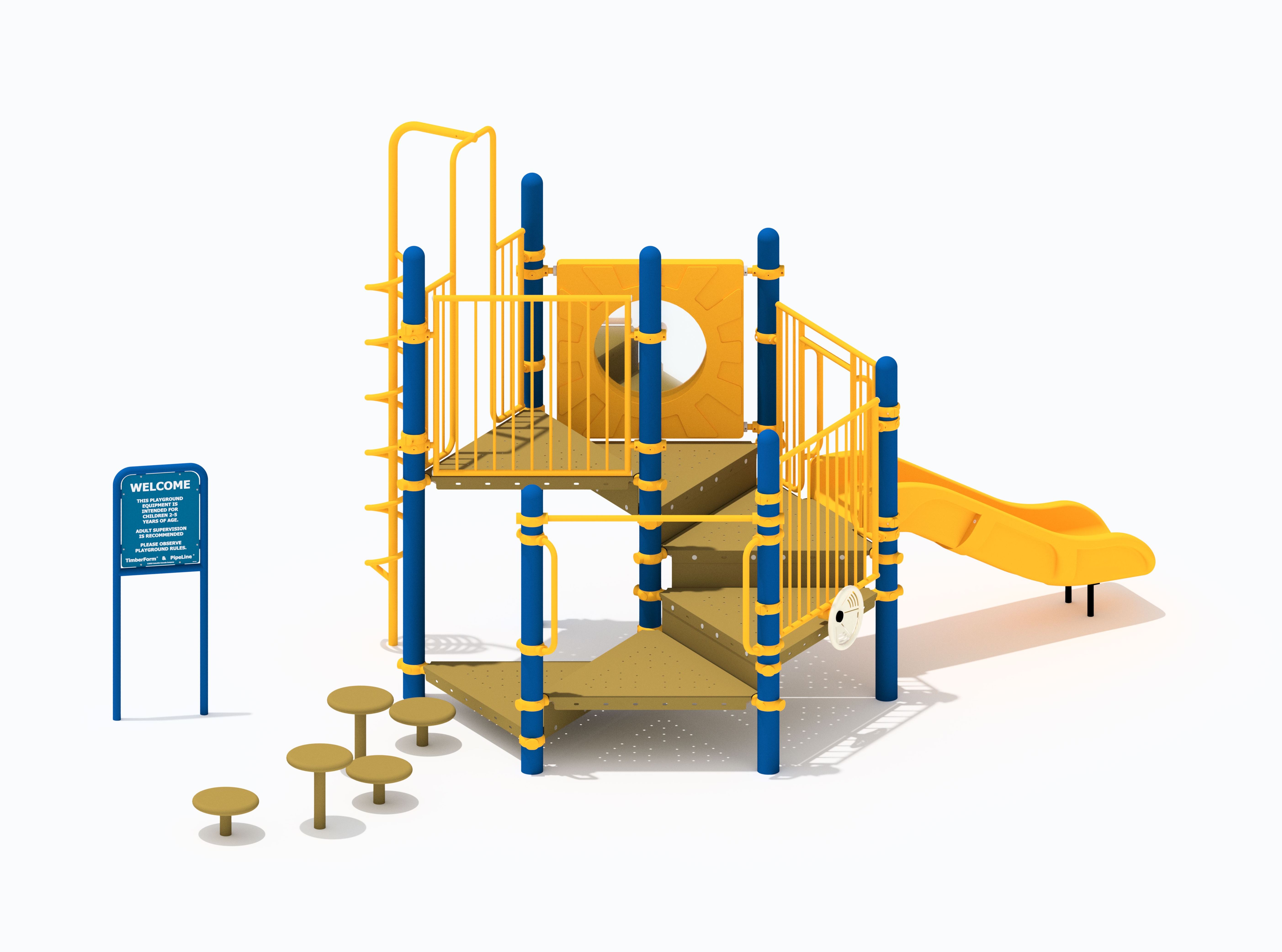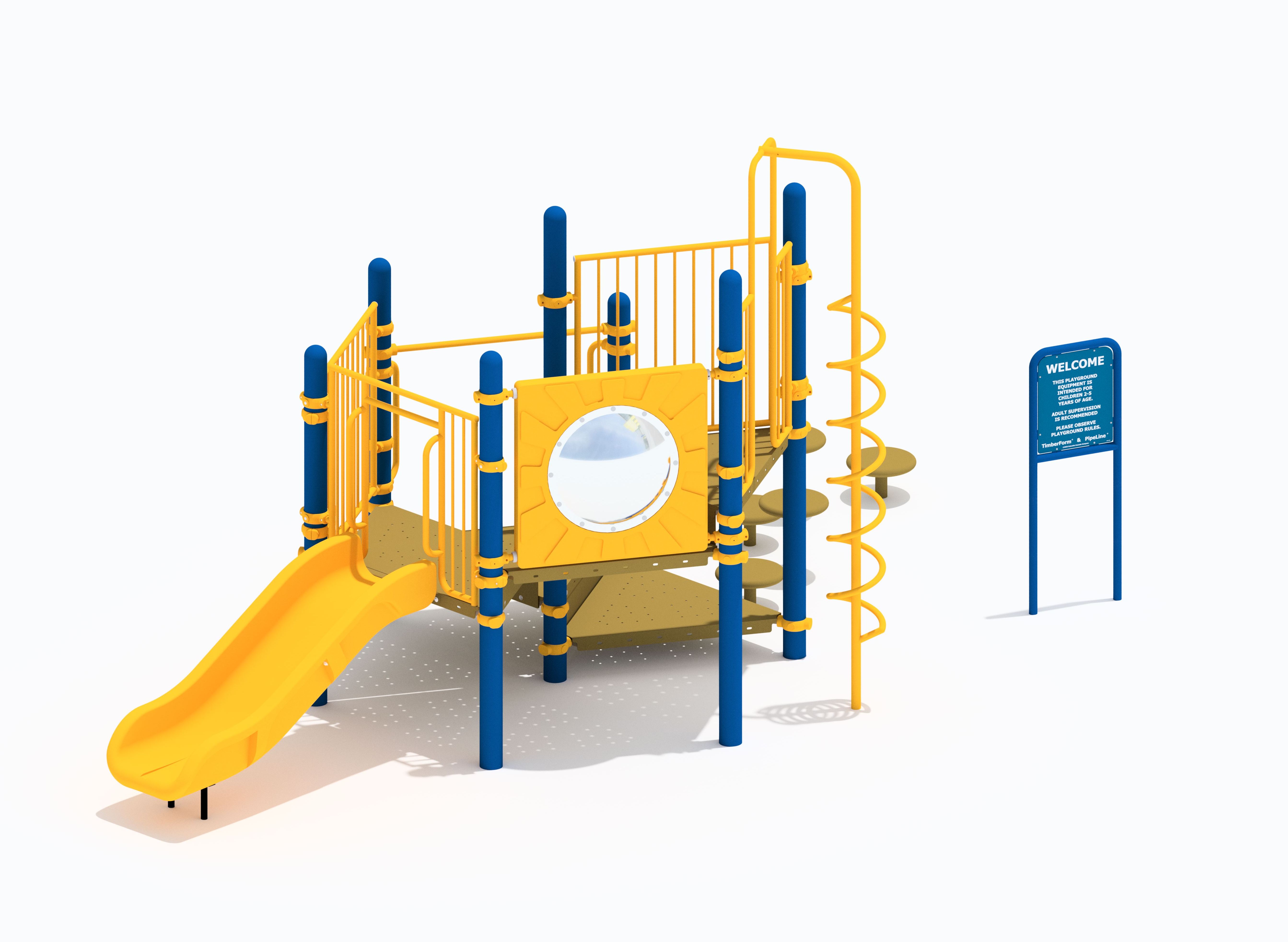 PipeLine 9813 Features/Activities: Play Area, Equipment Only: 17' x 12' (5.2m x 3.7m) Minimum Safe Use Zone: 29' x 24' (8.9m x 7.4m) 9813 Features: Accessible Entrance Deck, Baluster Wall, Baluster Wall with Ship's Wheel, Coil Climber, Convex/Flat Mirror Panel, Stepping Pads (5), Curved Tot Slide Chute, Welcome/Rules Sign Colors Illustrated: Posts: Regal Blue Accessories: Chrome Yellow Decks: SofDek Plastic-coated Perforated Steel, Brown Plastic: Yellow Accessibility Profile: 6 Total Play Components 4 Elevated Play Components (4 Accessible) 2 Ground Level Play Components (2 Accessible) Downloads: View or Download: PipeLine 9821 Features/Activities: Play Area, Equipment Only: 20' x 6' (6.1m x 1.9m) Minimum Safe Use Zone: 32' x 18' (9.8m x 5.5m) 9821 Features: Accessible Transfer Station with 8" (21cm) Riser, Kid's Bench, Perforated Steel Roof, Stairs with Baluster Walls with 8" (21cm) Riser, Talk Tube, Vertical Ladder, Vertical Loop Climber, Welcome/Rules Sign, Stainless Steel Wide Chute with 6" (15cm) Rails Colors Illustrated: Posts: Regal Blue Accessories: Red & Regal Blue Decks: Perforated Steel, Red Accessibility Profile: Accessibility Profile: 5 Total Play Components 4 Elevated Play Components (4 Accessible) 1 Ground Level Play Components (1 Accessible) Downloads: View or Download: |