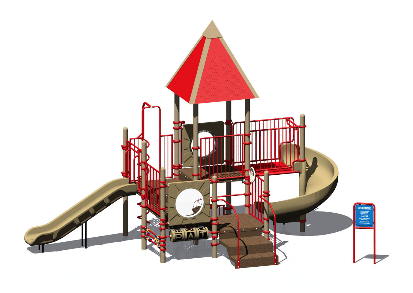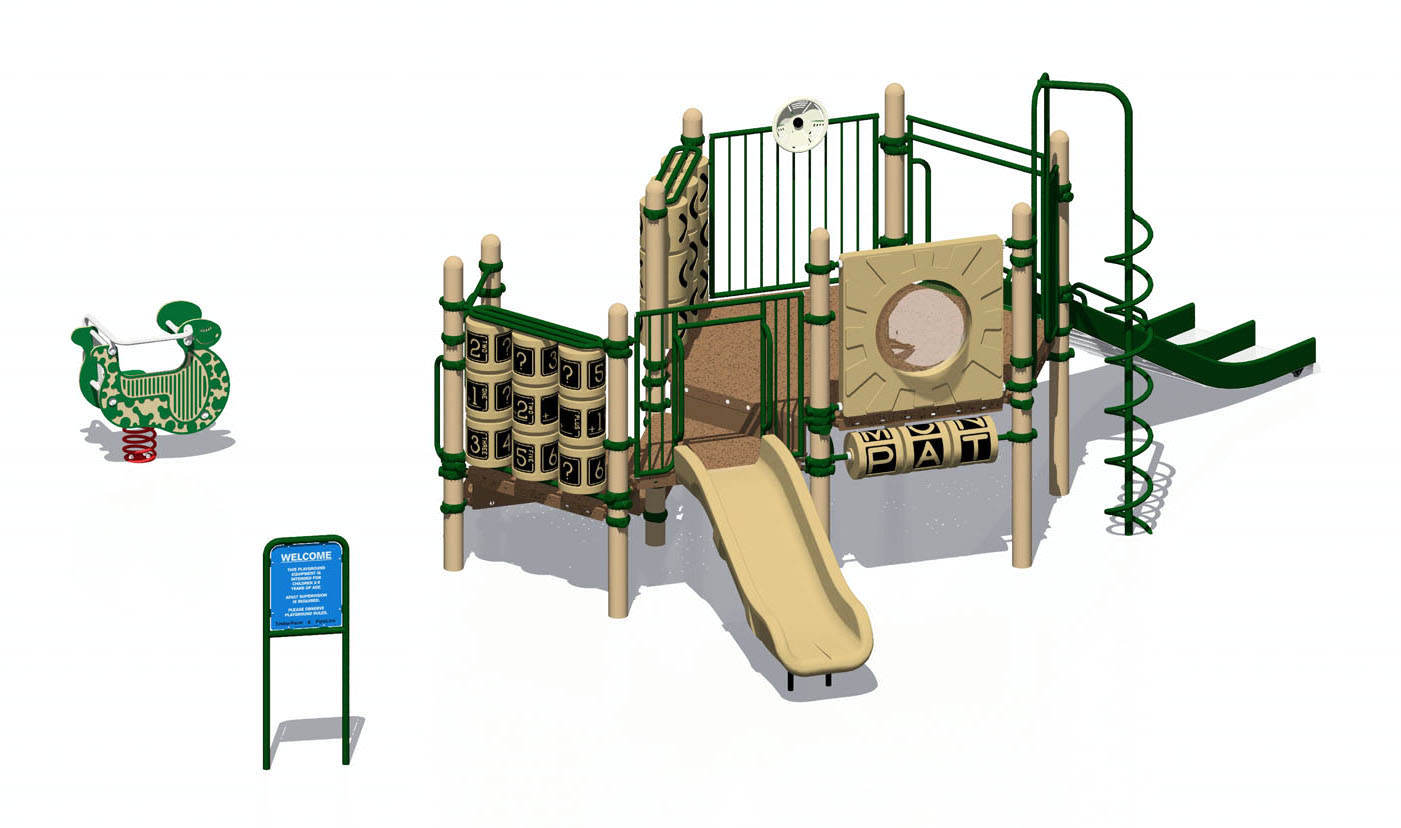 PipeLine 9856 Features/Activities: Play Area, Equipment Only: 30' x 14' (9.2m x 4.3m) Minimum Safe Use Zone: 42' x 26' (12.9m x 8.0m) Play Area, Spring Rider Only: 3' x 2' (1.0m x 0.7m) Minimum Safe Use Zone: 15' x 14' (4.6m x 4.3m) 9856 Features: Abacus, Accessible Spring Rider, Accessible Transfer Station with 8" (21cm) Riser, Baluster Wall (2), Baluster Wall with Ship's Wheel, Coil Climber, Convex/Flat Mirror Panel, Decorative Arch (3), Funnel Net Climber, Spelling Panel, Tic-Tac-Toe, Tube Chute, Vertical Cargo Net, Welcome/Rules Sign, Wide Chute Colors Illustrated: Posts: Evergreen Accessories: Coffee Tan Decks: SofDek Plastic-coated Perforated Steel, Brown Plastic: Tan Accessibility Profile: 12 Total Play Components 8 Elevated Play Components (8 Accessible) 4 Ground Level Play Components (4 Accessible) Downloads: View or Download: PipeLine 9878 Features/Activities: Play Area, Equipment Only: 30' x 21' (9.2m x 6.5m) Minimum Safe Use Zone: 42' x 33' (12.9m x 10.1m) 9878 Features: Abacus, Accessible Transfer Station with 8" (21cm) Riser (2), Addition Panel, Arch Climber, Arch Ring Climber, Baluster Wall, Baluster Wall with Ship's Wheel, Coil Climber, Convex/Flat Mirror Panel, CrossClimber Cargo Net, Decorative Arch (2), Kid's Bench, Spelling Panel, Tube Chute, Curved, Vertical Loop Climber, Welcome/Rules Sign, Wide Slide Chute, Wave/Slalom Colors Illustrated: Posts: Ocean Teal Accessories: Ocean Teal Decks: SofDek Plastic-coated Perforated Steel, Brown Plastic: Tan Accessibility Profile: 14 Total Play Components 10 Elevated Play Components (10 Accessible) 4 Ground Level Play Components (4 Accessible) Downloads: View or Download: |