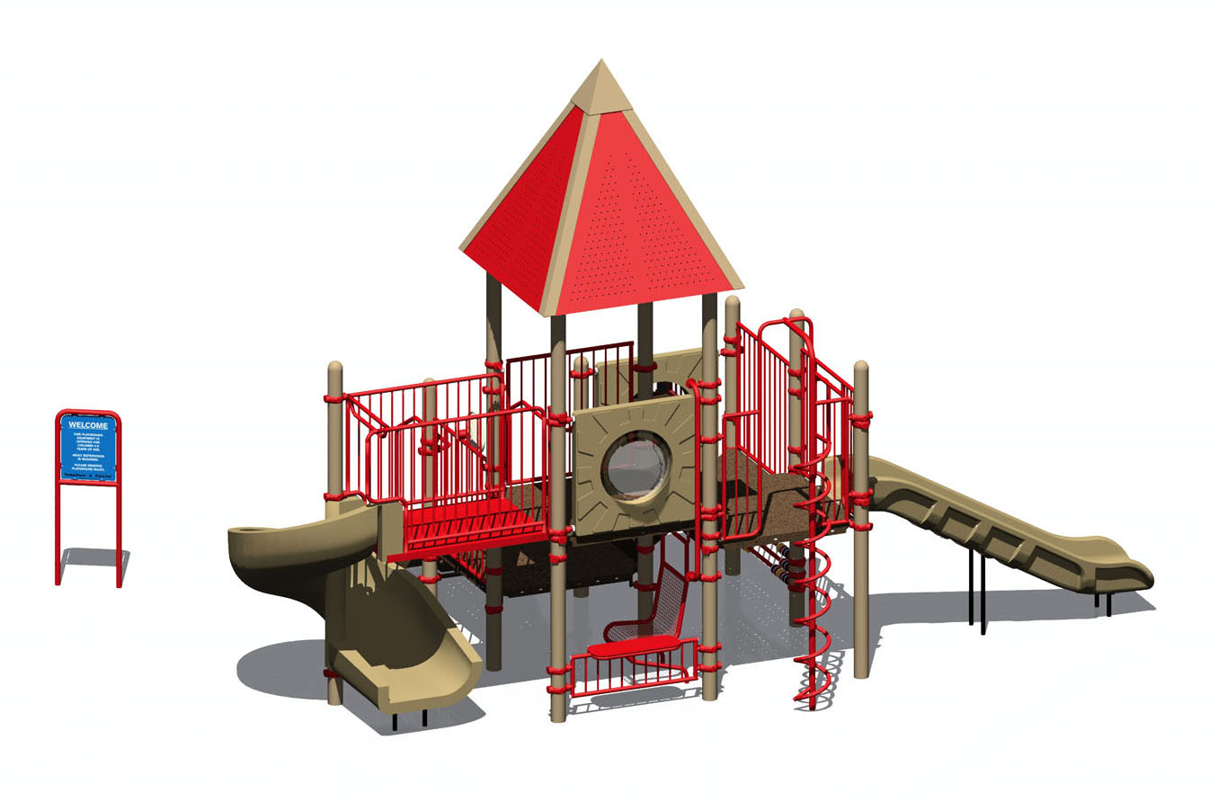 PipeLine 9839 Features/Activities: Play Area, Equipment Only: 25' x 19' (7.7m x 5.8m) Minimum Safe Use Zone: 37' x 31' (11.3m x 9.5m) 9839 Features: Accessible Entrance Deck, Accessible Transfer Station with 8" (21cm) Riser, Baluster Wall, Baluster Wall with Ship's Wheel, Bubble Panel, Coil Climber, Convex/Flat Mirror Panel, Kid's Bench, Maze Panel, Roof, Spelling Panel, Storefront Countertop, Talk Tube, Tic-Tac-Toe, Tot Slide Chute, Curved, Tunnel Crawl, Clear Plastic, Vertical Loop Climber, Welcome/Rules Sign, Wide Wave/Slalom Slide Chute Colors Illustrated: Posts: Coffee Tan Accessories: Evergreen Decks: SofDek Plastic-coated Perforated Steel, Brown Plastic: Tan Accessibility Profile: 15 Total Play Components 9 Elevated Play Components (9 Accessible) 6 Ground Level Play Components (6 Accessible) Downloads: View or Download: PipeLine 9843 Features/Activities: Play Area, Equipment Only: 24' x 14' (7.4m x 4.3m) Minimum Safe Use Zone: 36' x 26' (11.0m x 8.0m) 9843 Features: Abacus, Accessible Transfer Station with 8" (21cm) Riser, Baluster Wall (2), Baluster Wall with Ship's Wheel, Bubble Panel, Coil Climber, Convex/Flat Mirror Panel, Kid's Bench, Perforated Steel Roof, Slide Chute, Spelling Panel, Spiral Slide Chute, Storefront Countertop, Talk Tube, Welcome/Rules Sign Colors Illustrated: Posts: Coffee Tan Accessories: Coffee Tan & Red Decks: SofDek Plastic-coated Perforated Steel, Brown Plastic: Tan Accessibility Profile: 12 Total Play Components 7 Elevated Play Components (7 Accessible) 5 Ground Level Play Components (5 Accessible) Downloads: View or Download: |