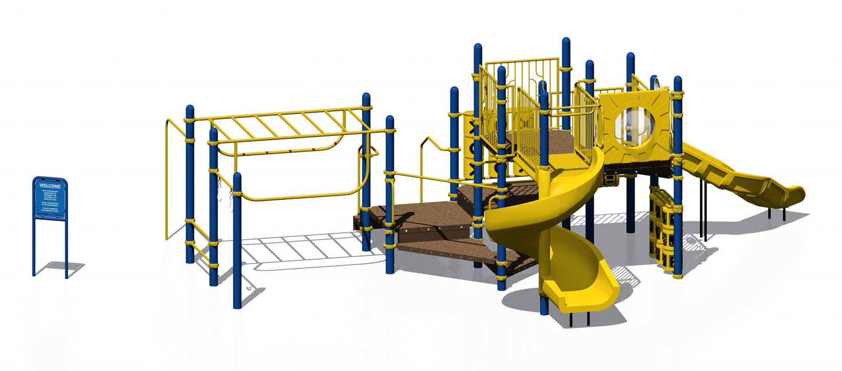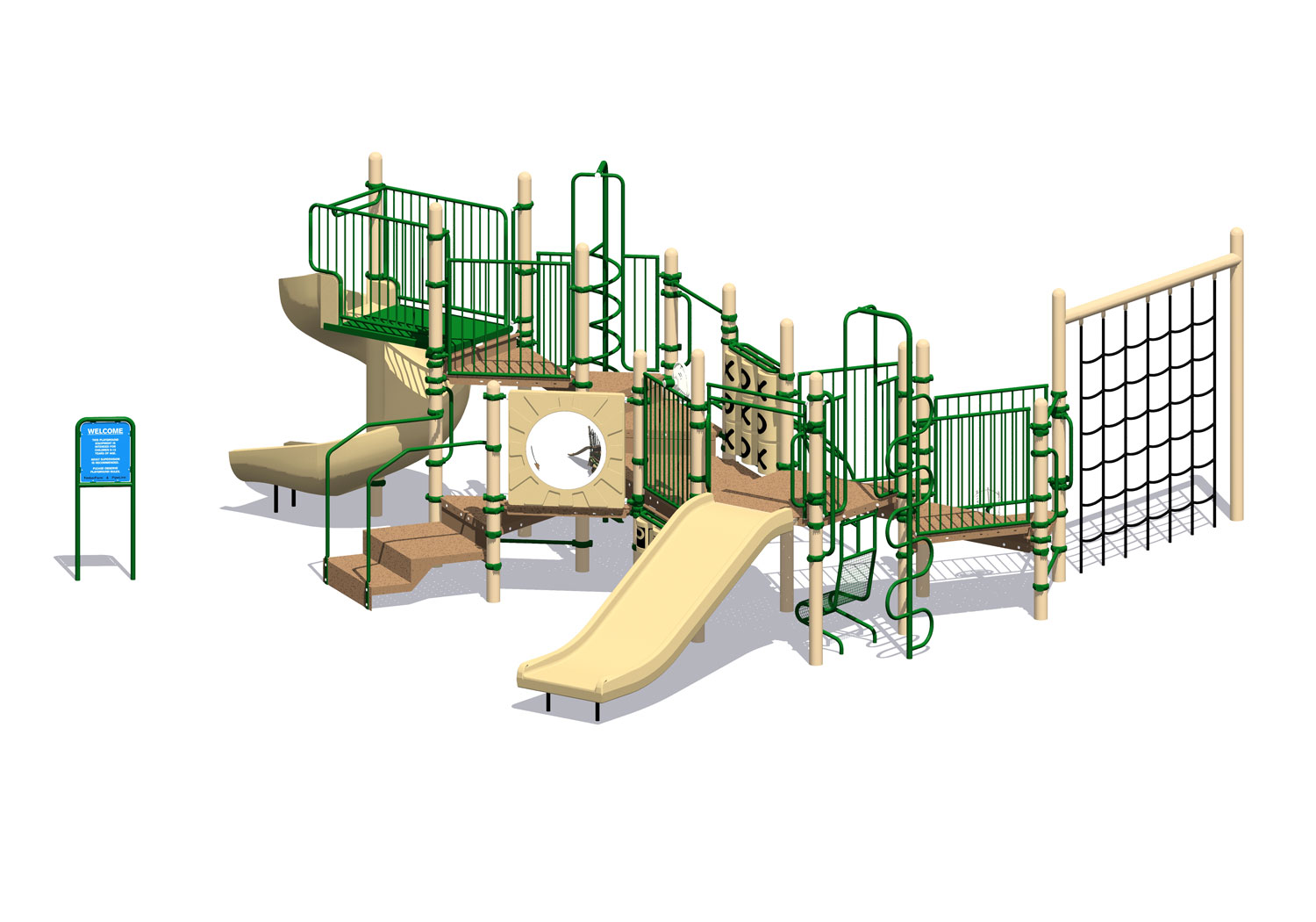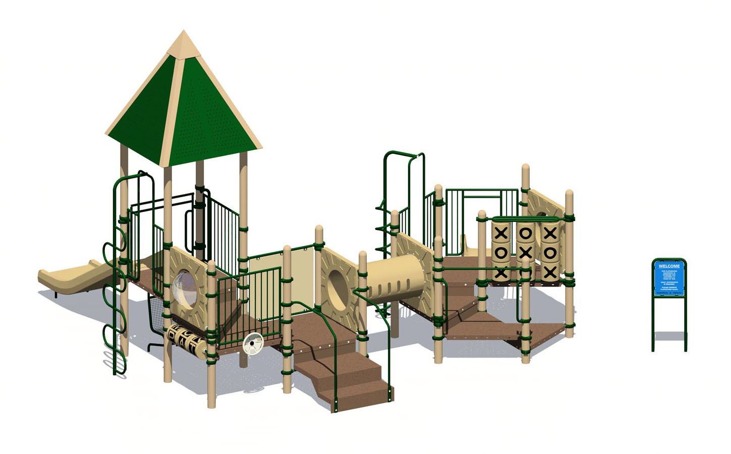 PipeLine 9839 Features/Activities: Play Area, Equipment Only: 25' x 19' (7.7m x 5.8m) Minimum Safe Use Zone: 37' x 31' (11.3m x 9.5m) 9839 Features: Accessible Entrance Deck, Accessible Transfer Station with 8" (21cm) Riser, Baluster Wall, Baluster Wall with Ship's Wheel, Bubble Panel, Coil Climber, Convex/Flat Mirror Panel, Kid's Bench, Maze Panel, Roof, Spelling Panel, Storefront Countertop, Talk Tube, Tic-Tac-Toe, Tot Slide Chute, Curved, Tunnel Crawl, Clear Plastic, Vertical Loop Climber, Welcome/Rules Sign, Wide Wave/Slalom Slide Chute Colors Illustrated: Posts: Coffee Tan Accessories: Evergreen Decks: SofDek Plastic-coated Perforated Steel, Brown Plastic: Tan Accessibility Profile: 15 Total Play Components 9 Elevated Play Components (9 Accessible) 6 Ground Level Play Components (6 Accessible) Downloads: View or Download: PipeLine 9852 Features/Activities: Play Area, Equipment Only: 22' x 21' (6.8m x 6.5m) Minimum Safe Use Zone: 34' x 33' (10.4m x 10.1m) 9852 Features:, Accessible Transfer Station with 8" (21cm) Riser, Arch Ring Climber, Decorative Wall with Ship's Wheel (2), Kid's Bench, Spiral Slide Chute, Talk Tube, Tube Chute, Curved, Welcome/Rules Sign, Wide Chute Colors Illustrated: Posts: Regal Blue Accessories: Red Decks: SofDek Plastic-coated Perforated Steel, Brown Plastic: Yellow Accessibility Profile: 8 Total Play Components 6 Elevated Play Components (6 Accessible) 2 Ground Level Play Components (2 Accessible) Downloads: View or Download: |