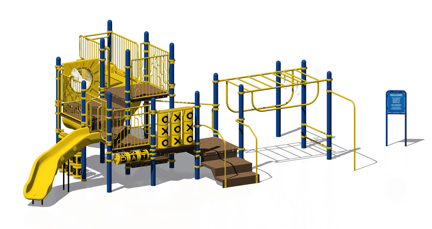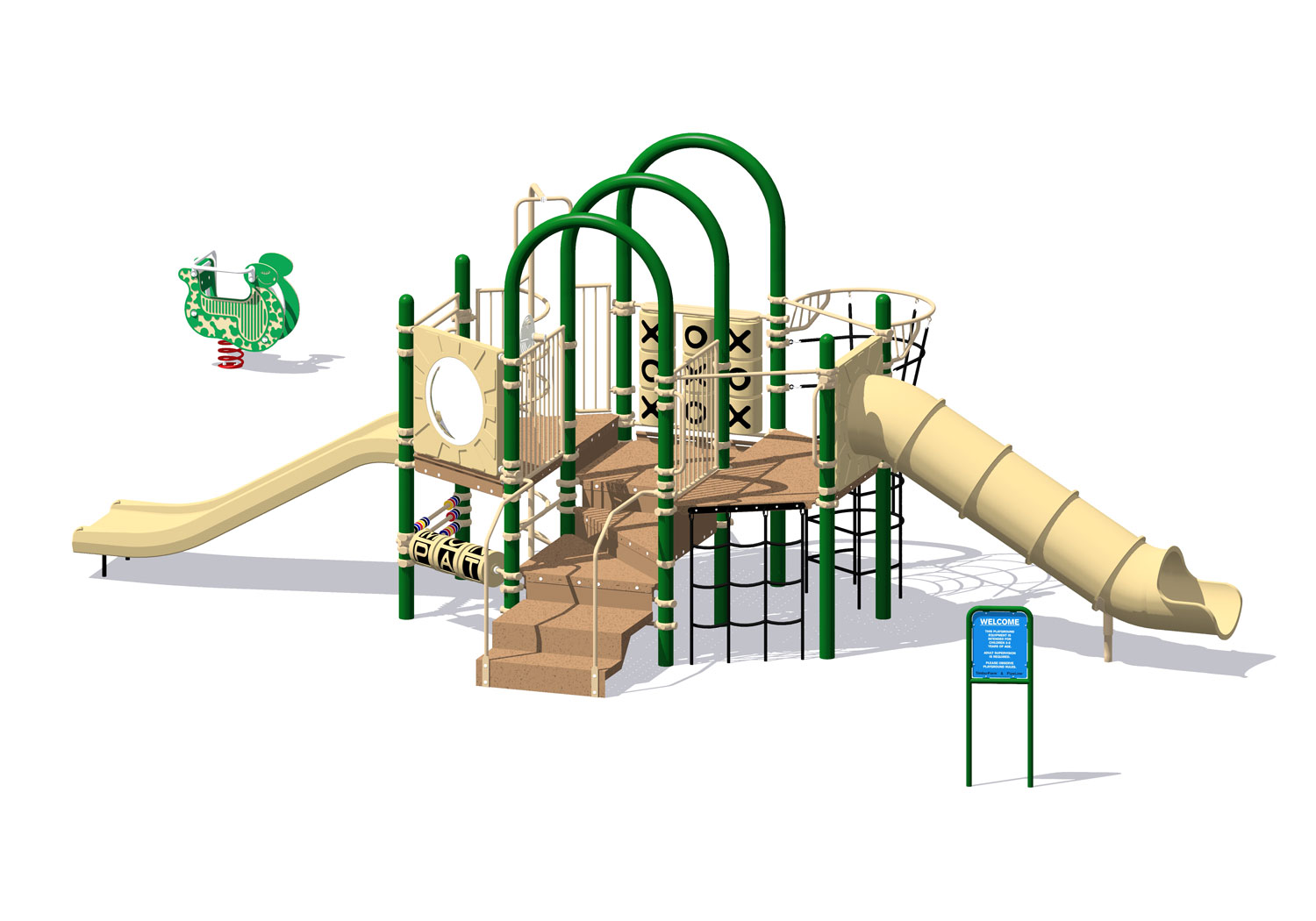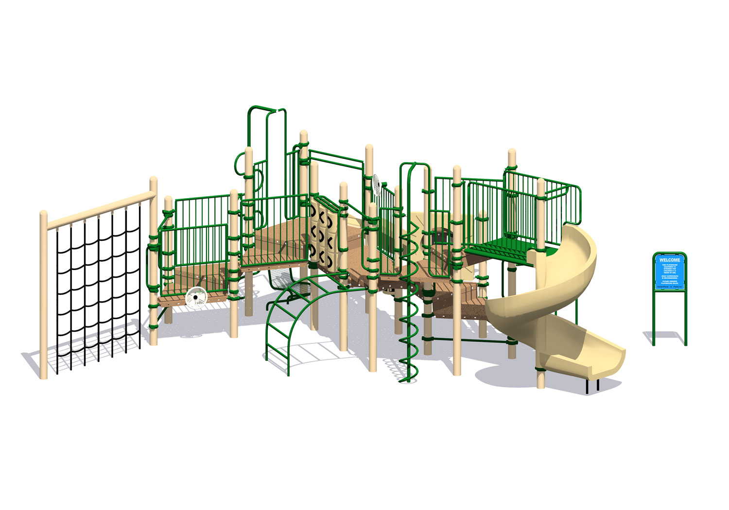 PipeLine 9839 Features/Activities: Play Area, Equipment Only: 25' x 19' (7.7m x 5.8m) Minimum Safe Use Zone: 37' x 31' (11.3m x 9.5m) 9839 Features: Accessible Entrance Deck, Accessible Transfer Station with 8" (21cm) Riser, Baluster Wall, Baluster Wall with Ship's Wheel, Bubble Panel, Coil Climber, Convex/Flat Mirror Panel, Kid's Bench, Maze Panel, Roof, Spelling Panel, Storefront Countertop, Talk Tube, Tic-Tac-Toe, Tot Slide Chute, Curved, Tunnel Crawl, Clear Plastic, Vertical Loop Climber, Welcome/Rules Sign, Wide Wave/Slalom Slide Chute Colors Illustrated: Posts: Coffee Tan Accessories: Evergreen Decks: SofDek Plastic-coated Perforated Steel, Brown Plastic: Tan Accessibility Profile: 15 Total Play Components 9 Elevated Play Components (9 Accessible) 6 Ground Level Play Components (6 Accessible) Downloads: View or Download: PipeLine 9852 Features/Activities: Play Area, Equipment Only: 22' x 21' (6.8m x 6.5m) Minimum Safe Use Zone: 34' x 33' (10.4m x 10.1m) 9852 Features:, Accessible Transfer Station with 8" (21cm) Riser, Arch Ring Climber, Decorative Wall with Ship's Wheel (2), Kid's Bench, Spiral Slide Chute, Talk Tube, Tube Chute, Curved, Welcome/Rules Sign, Wide Chute Colors Illustrated: Posts: Regal Blue Accessories: Red Decks: SofDek Plastic-coated Perforated Steel, Brown Plastic: Yellow Accessibility Profile: 8 Total Play Components 6 Elevated Play Components (6 Accessible) 2 Ground Level Play Components (2 Accessible) Downloads: View or Download: |